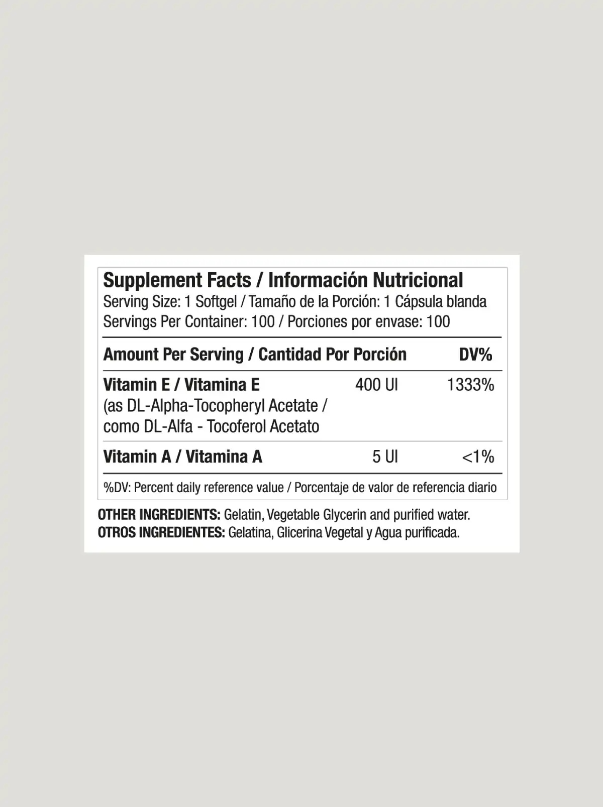 Vitamina E en cápsula de medical green contiene 400 IU de vitamina E.